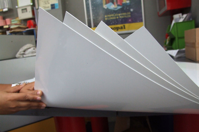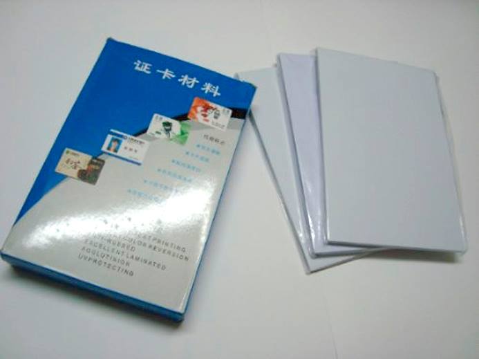 Paquete de hojasLas hojas de PVC para producción de credenciales se componen de una placa de PVC de .45 mm de espesor y dos películas de impresión semitransparentes de .15 mm de espesor. Son estas últimas las que se imprimen y se adhieren a la placa de PVC con el laminador. Una vez unidas una placa de PVC con una película de impresión de cada lado, tenemos conformada la placa con el espesor de .75 mm que tiene una credencial estándar.